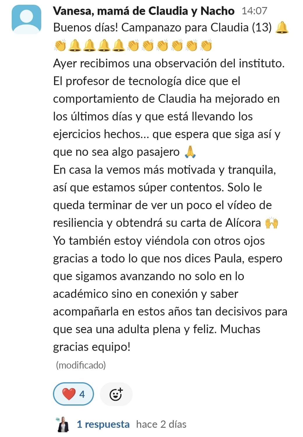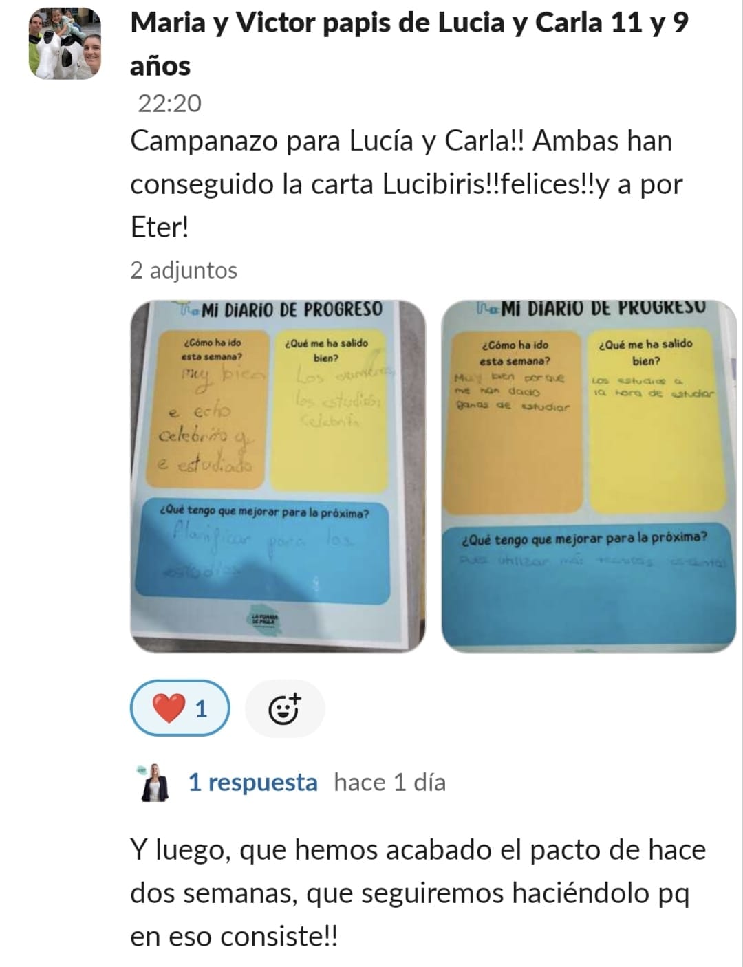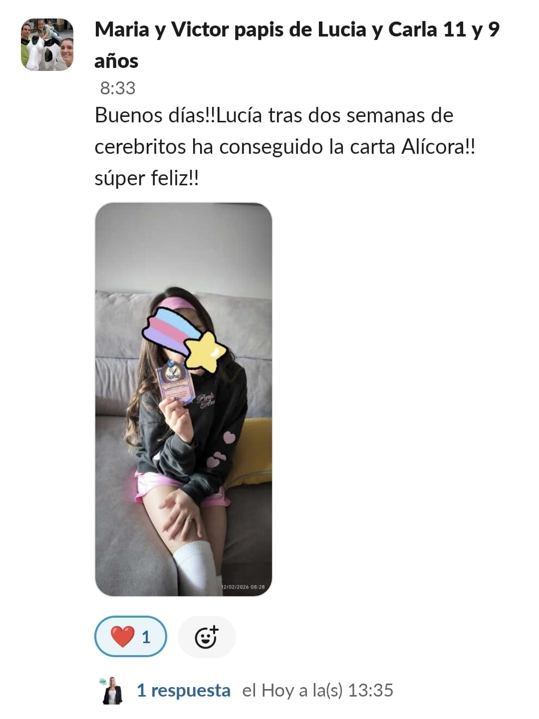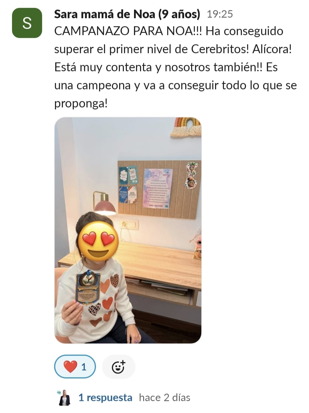 A nuestra hija Paula de 11 años, le costaba mucho ponerse a estudiar, no sabía hacerlo sola, se distraía constantemente y se frustraba enseguida. La primera en cambiar el "chip" fui yo. Con las masterclass, los directos y las herramientas que nos da Paula en GPS, entendí como funciona el cerebro del niño y comencé a comprenderla y aceptar que sería un proceso lento pero que, aplicando las herramientas correctas con constancia, conseguiríamos crear nuevas neuroasociaciones en su cerebro que la motivaran en el estudio. Ella empezó con poca motivación, pero los directos con Paula han sido clave para que viera que hay muchos niños en su situación y que están mejorando con esfuerzo, día a día. Y que aprender puede llegar a ser hasta divertido... y que hasta los más pequeños logros son dignos de celebración. Mi hija ha empezado a aplicar muchas de las herramientas de cerebritos y ha conseguido ponerse a estudiar con motor propio. Es la mejor inversión que puedes hacer si quieres que tu hijo crezca en autoestima, y entienda que no es que no pueda, si no que le faltan las herramientas adecuadas para convertirse en un buen esgudiante...y en cerebritos las va a encontrar, sólo hay que aplicarlas con constancia y entender que no es un proceso ni rapido ni lineal, pero sí efectivo. GRACIAS PAULA POR TU MARAVILLOSO TRABAJO!!🥰