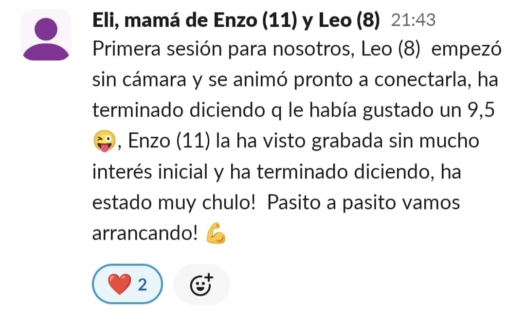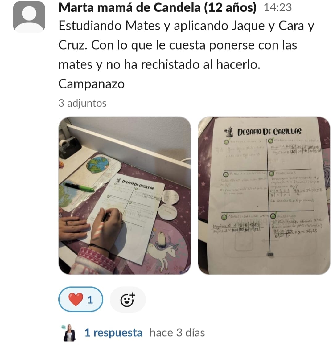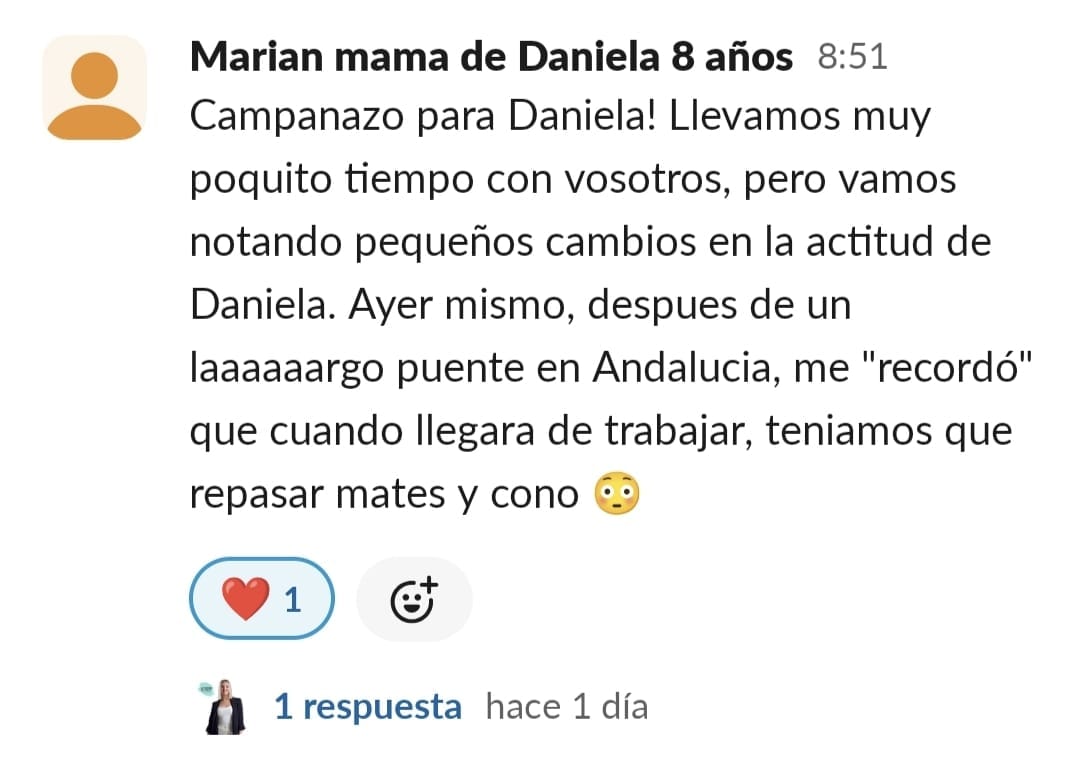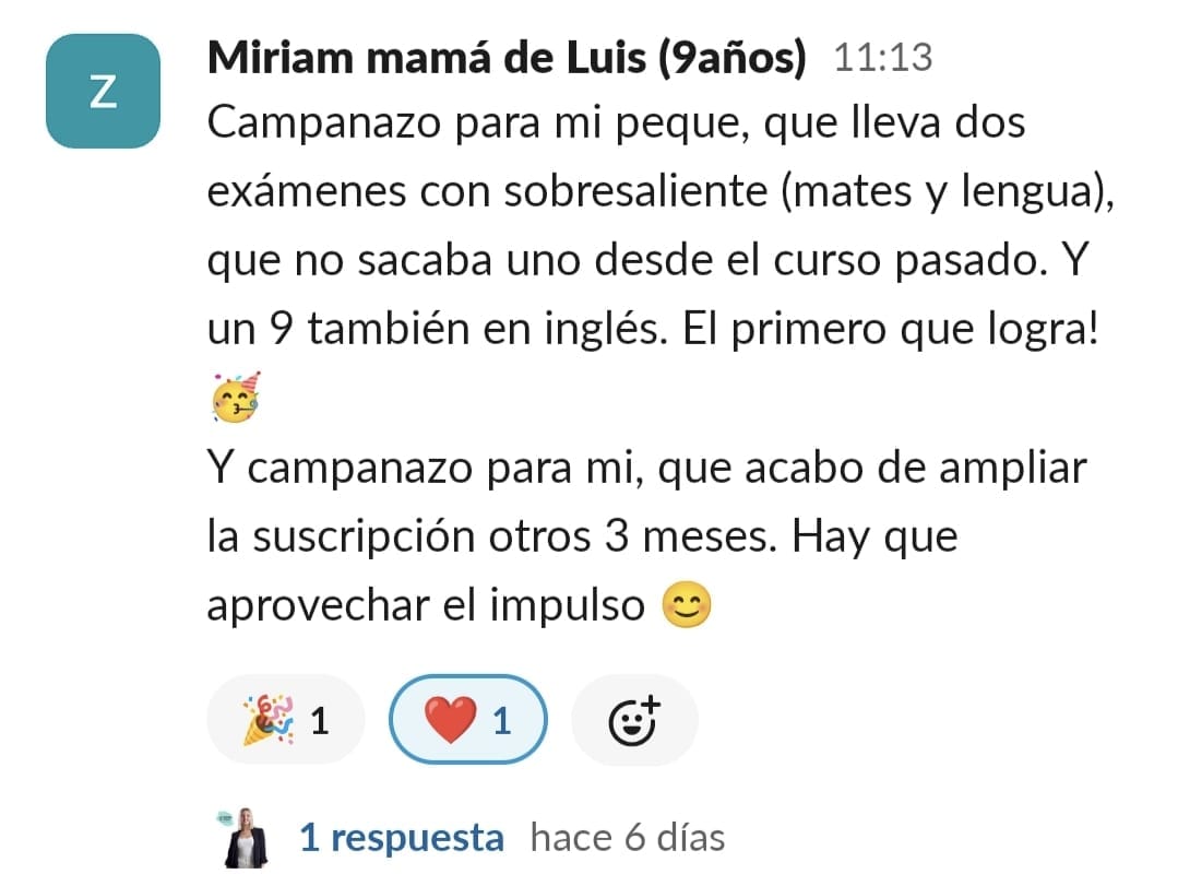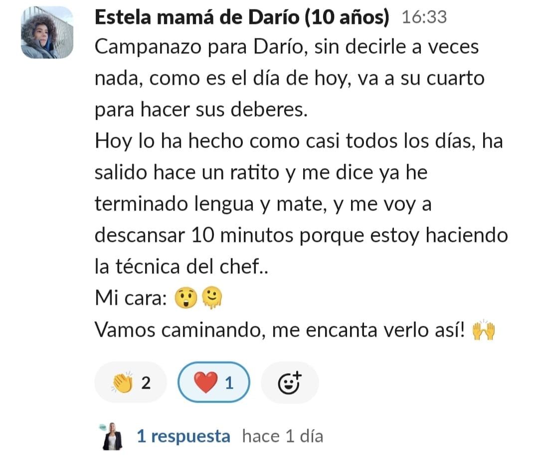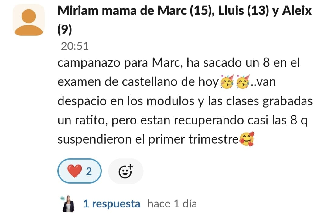 Nos costaba mucho concentrarnos, planificar y mi hijo tenía 0 técnicas de estudio para aprender. Cuando entré me pareció mucho más divertido de lo que pensaba, y motiva mucho a los niños.