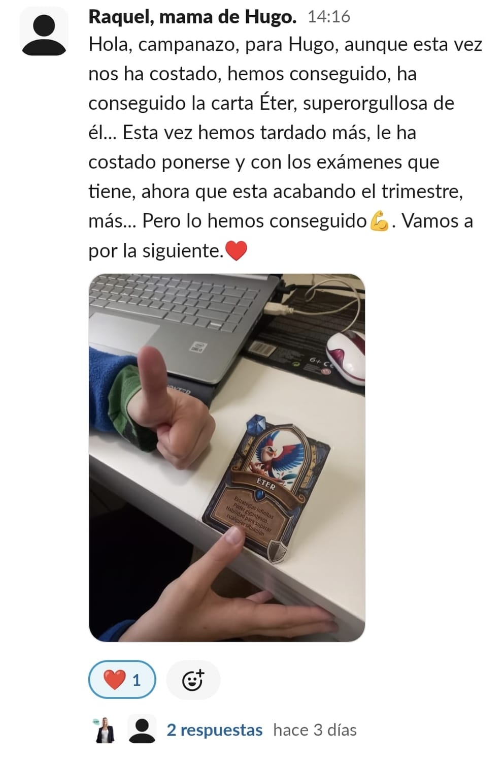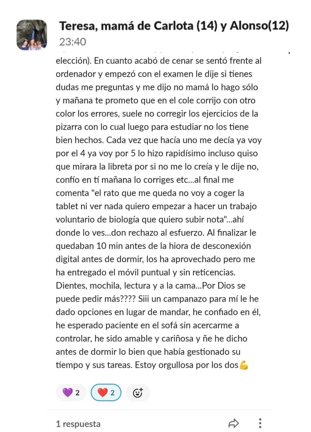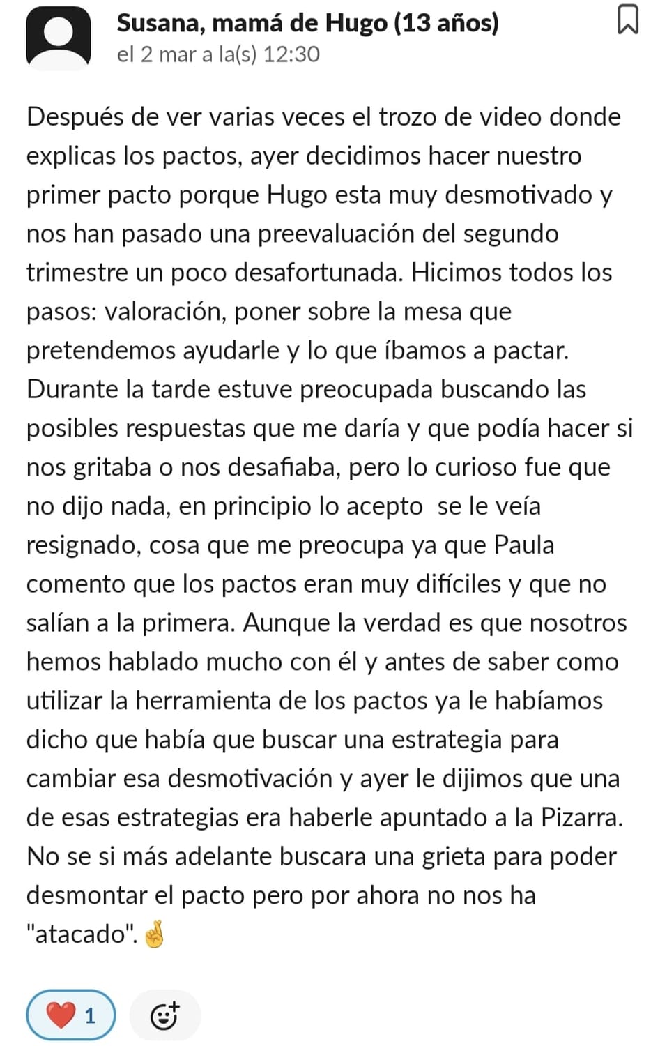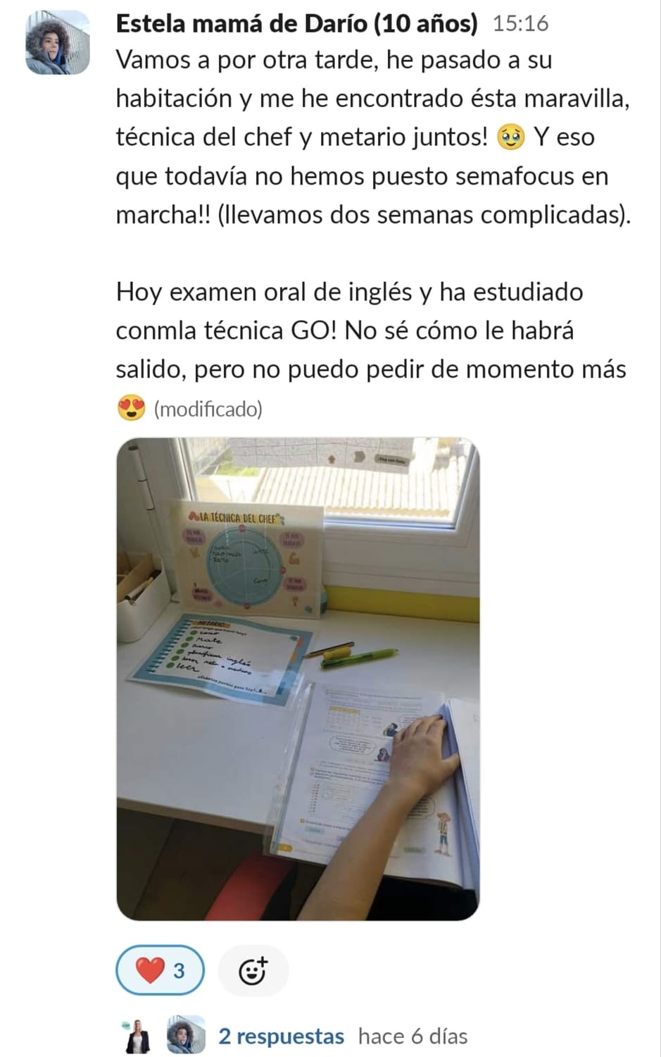 Nos costaba mucho concentrarnos, planificar y mi hijo tenía 0 técnicas de estudio para aprender. Cuando entré me pareció mucho más divertido de lo que pensaba, y motiva mucho a los niños.