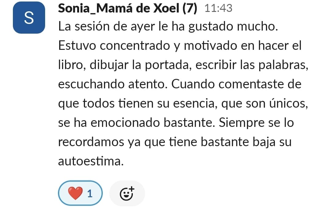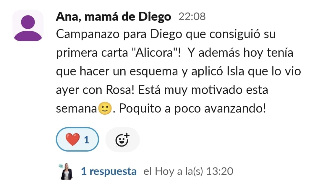 Empecé y me sentía completamente perdida y con miedo a no saber hacerlo bien y poder ayudar a mi hijoEn muy poco tiempo aprendí cómo ayudarle a empezar a motivarse por querer aprender y no sentirse tan poca cosa. Para mi, nuestros logros más importantes han sido: