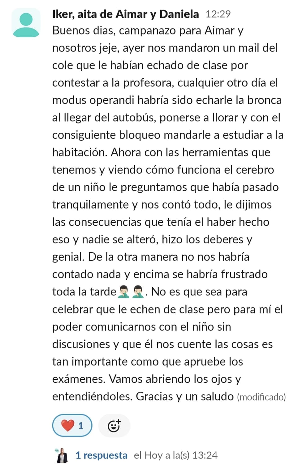 Me sentí acompañada, no juzgada, aprendiendo sobre el comportamiento de los peques y también del nuestro, con herramientas para poder ayudarla no solo a nivel de deberes.